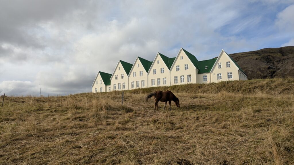 My project began at the end of August, just in time to savour the short-lived Icelandic summer. After a few days spent in Reykjavík, we were transported to the enchanting place called Brú, so unique that it cannot be found on any map. Brú, which in Icelandic means “bridge”, is a landmark in the open terrain, situated a few kilometres from the small settlement of Stadur, serving as a point of orientation on the road. There was nothing around us besides scenic landscapes, pastures where lambs and Icelandic horses grazed, and distant farms scattered several kilometres away. We were accommodated in a building that had once served as a peripheral post office with all the facilities required for horse postmen who stopped there in the past.