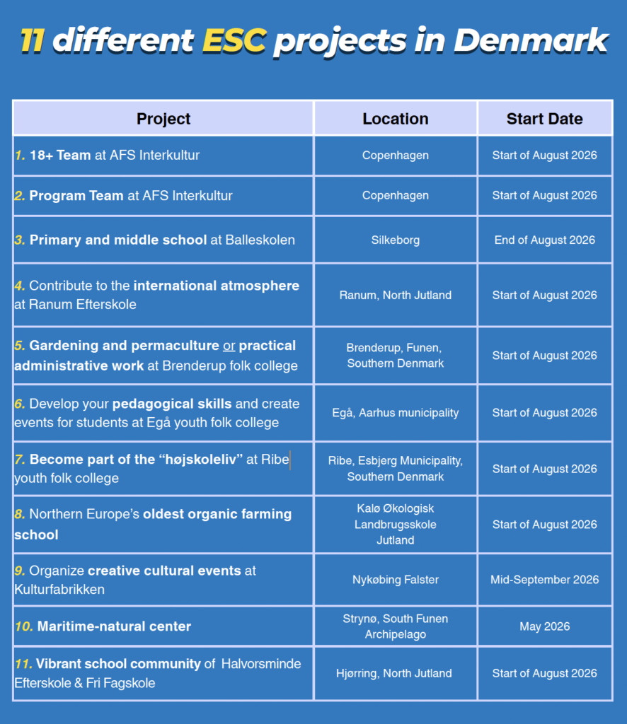 Bona Fides Association in cooperation with AFS Interkultur Danmark is looking for Polish participants for 11 different open ESC positions in Denmark starting in 2026!